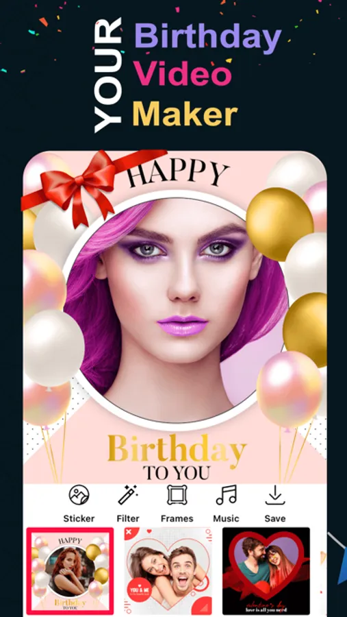 Birthday Movie Maker Photo can help you create Happy birthday video- create your own Birthday Video and slideshow video from images and music . Birthday Video Maker is application for creating video from images, music and share amazing music video story with your friends and family.