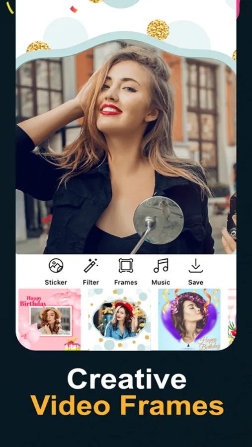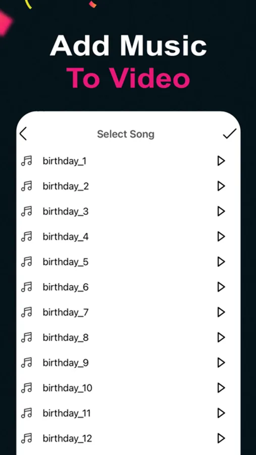 → Background music - Make video from Adding Music, New Photos, Frames, Effects to make Birthday Photo Video Maker or Birthday Photo Frame.