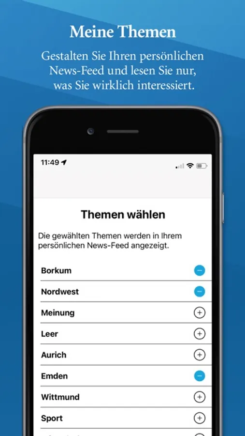 Im Newsfeed legen Sie Ihre persönlichen Themen fest. So verpassen Sie nichts und lesen abgestimmt auf Ihre Interessen.