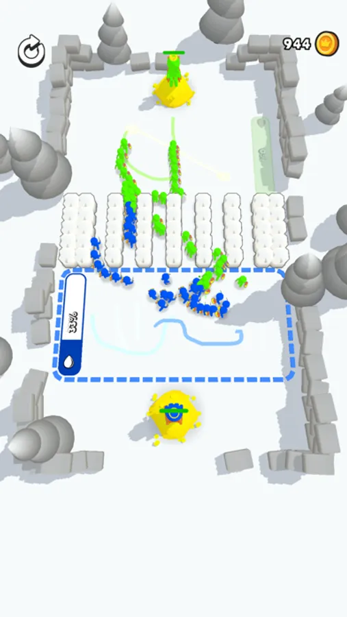 Choose your army skin, color and banners and upgrade your skills (attack, defense) or army size (ink).