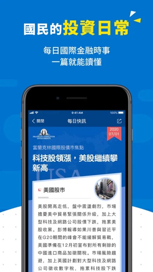每日提供最新市場趨勢,帶你秒懂國際金融動態,透過每日時事摘要、分析報告、市場影音,讓國民用多元豐富的方式了解市場動向,市場資訊時刻不漏接。