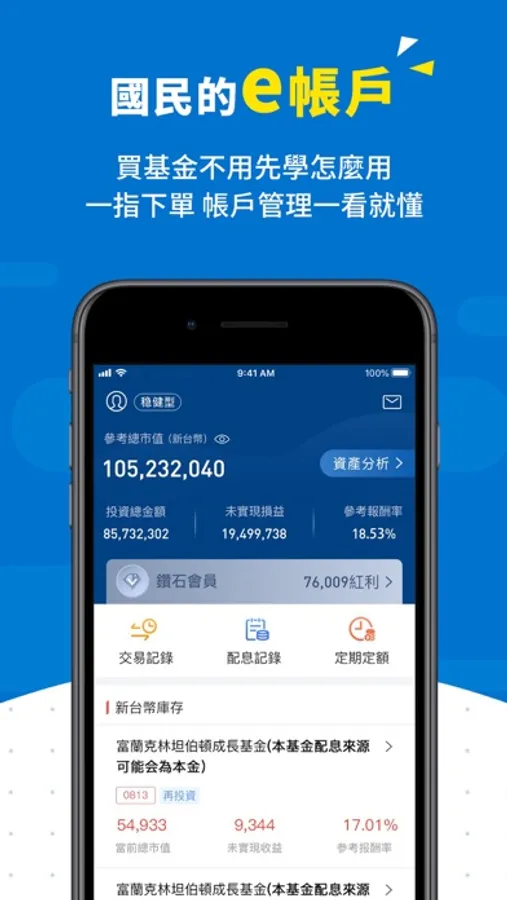 買基金不用先學介面怎麼用,國民e帳戶APP一指就能下單,帳戶管理一目瞭然。