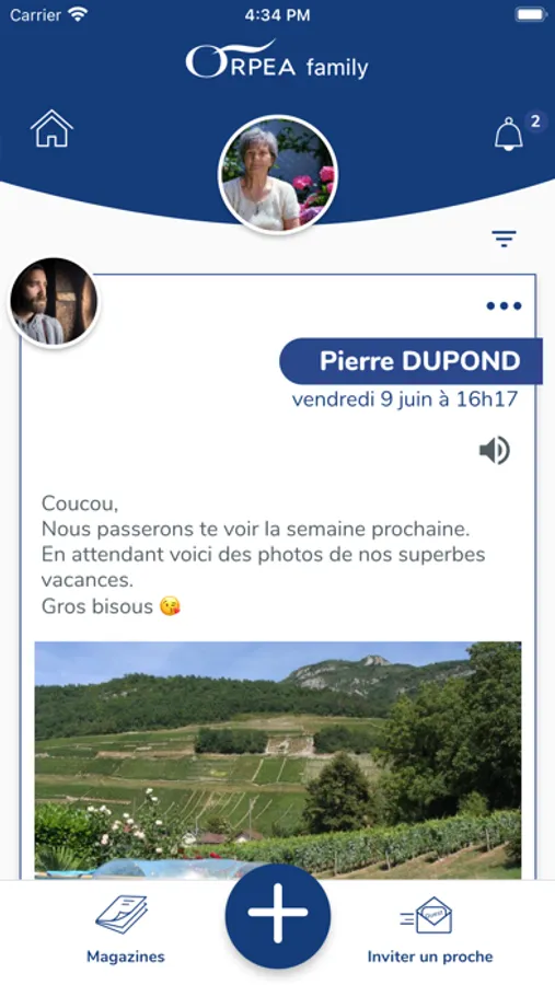 Au travers de l’application Orpea Family, vous pourrez, en tant que résident ou membre de famille :