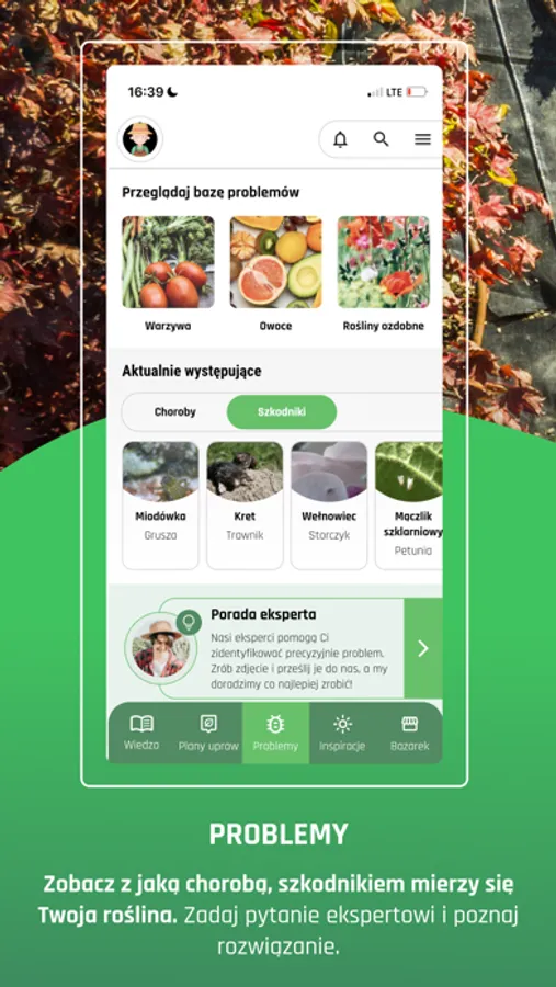 Aplikacja to także miejsce, w którym możesz rozpoznać jaką roślinę masz w swoim ogrodzie lub zidentyfikować chorobę czy szkodnika na swojej roślinie. Zobacz jak rozpoznać co dolega Twoim drzewom, krzakom i kwiatom, zadaj pytanie innym ogrodnikom-amatorom lub poproś o pomoc eksperta. Zrób zdjęcie swojej rośliny i poczekaj 24h na poradę eksperta i odzew od innych ogrodników.
