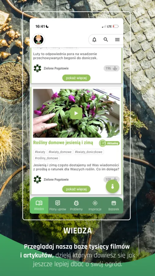 Aplikacja działa jak kalendarz ogrodniczy. Już po wejściu wiesz co wykonać w swoim ogrodzie. Cięcie, siew, sadzenie, oprysk, przesadzanie, nawożenie, usuwanie chwastów - znajdziesz tu wyczerpujące informacje i instrukcje wideo o wszystkich pracach ogrodniczych. Sprawdź co dzisiaj możesz zrobić w swoim ogrodzie, by był w jak najlepszej kondycji. Tysiące postów i filmów z poradami dotyczącymi prac ogrodniczych czekają na odkrycie. o swoisty atlas roślin, w którym zdobędziesz wiedzę o każdym aspekcie ogrodu.