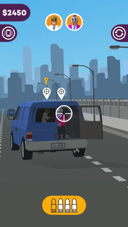 In each mission you need to shoot criminals. Be accurate - you have limited amount of ammo