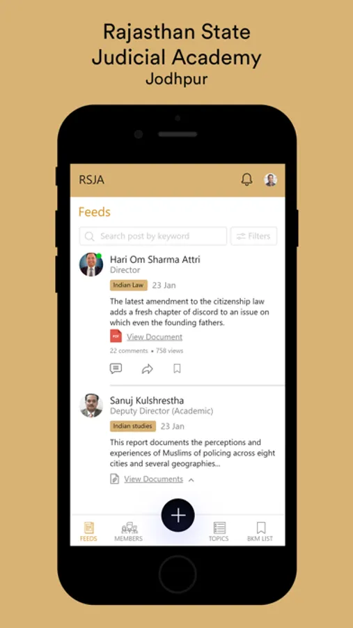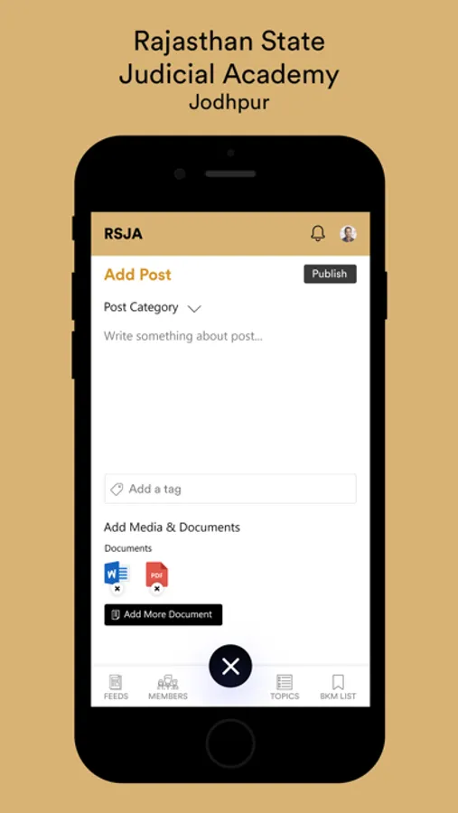In this application, the member of the organization will be able to view the posts related to the selected topic of interest and will also be able to add new posts as text, images, videos, and documents. The other members on the application will be able to view the post related to their topic of interest. The members will also be able to Bookmark the post and will also be able to share and comment on the post.