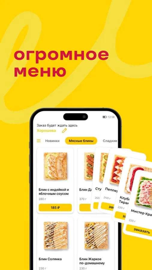 - заказывай блюдо в блине на завтрак, обед и ужин;