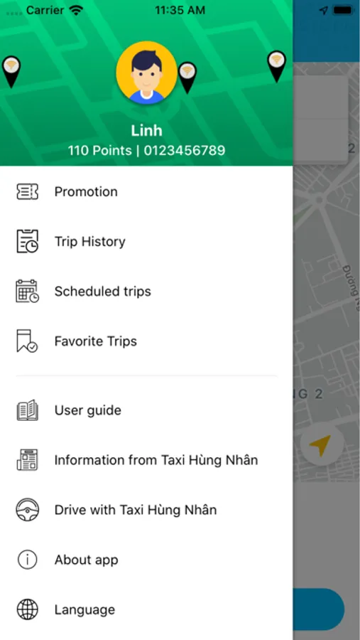 (1) Cho phép khách hàng đặt xe đến đón ngay tại vị trí hiện tại, đặt xe cho người thân ở vị trí khác hoặc đặt xe trước (cuộc hẹn) từ 15 phút đến 24 giờ