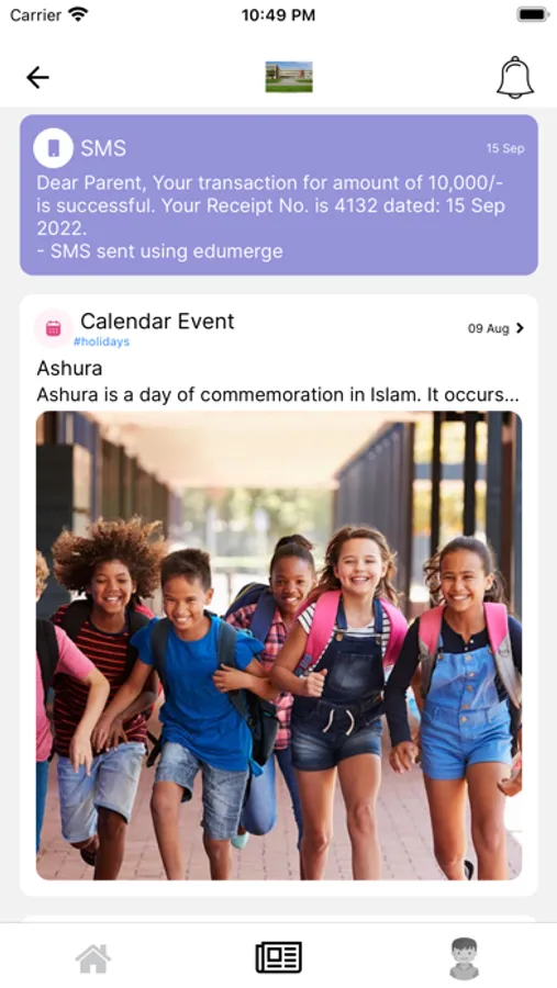 - Date-wise view of all the notifications received from the Institution.
