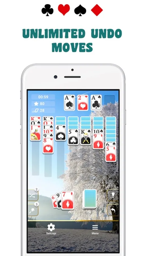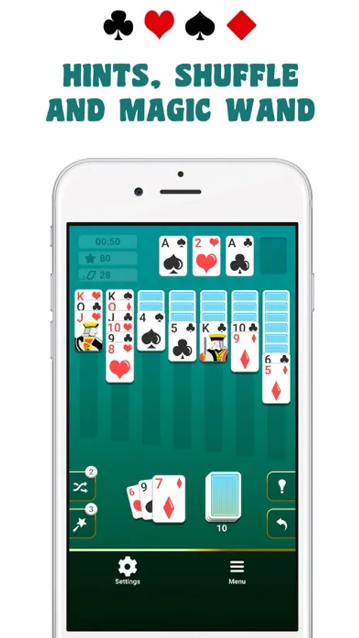 You can either play easy Draw 1 games where most games are winnable, or if you feel up-to the challenge, Draw 3 and Vegas play modes. If you got stuck you can use powerful hints to help you finish the game. Plus, daily challenges to test your skills.