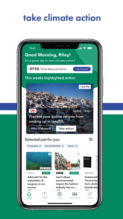 Make a ripple effect with easy, impactful climate action on your phone in just seconds — and get rewarded for doing it. Every action you take earns points, and when you’ve earned enough points you can redeem them for rewards. Ripplfect gives you practical tools for a more sustainable life.