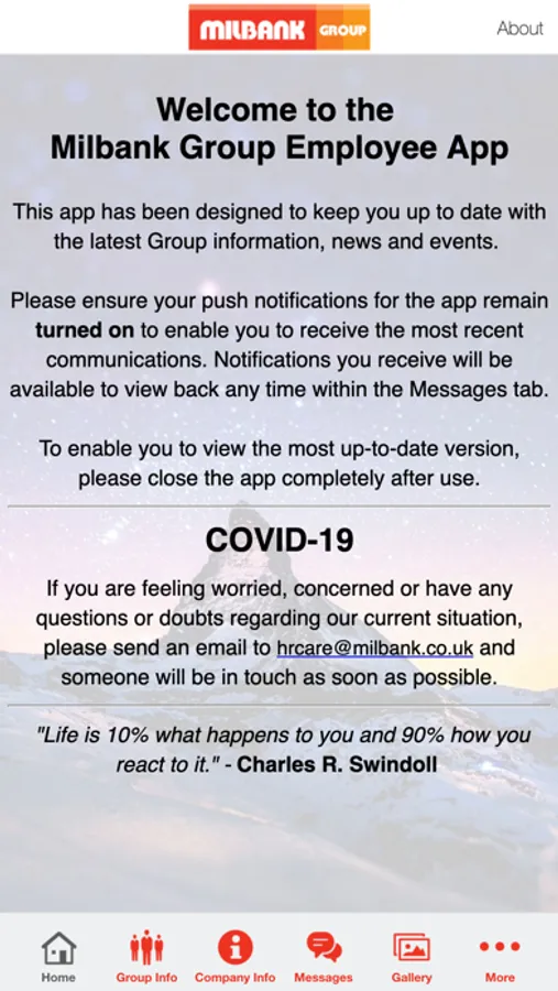 Welcome to the official Milbank Group employee app. Here you will find all of the most important up to date information regarding our businesses. Please ensure push notifications are turned on to make sure you receive all important communications.