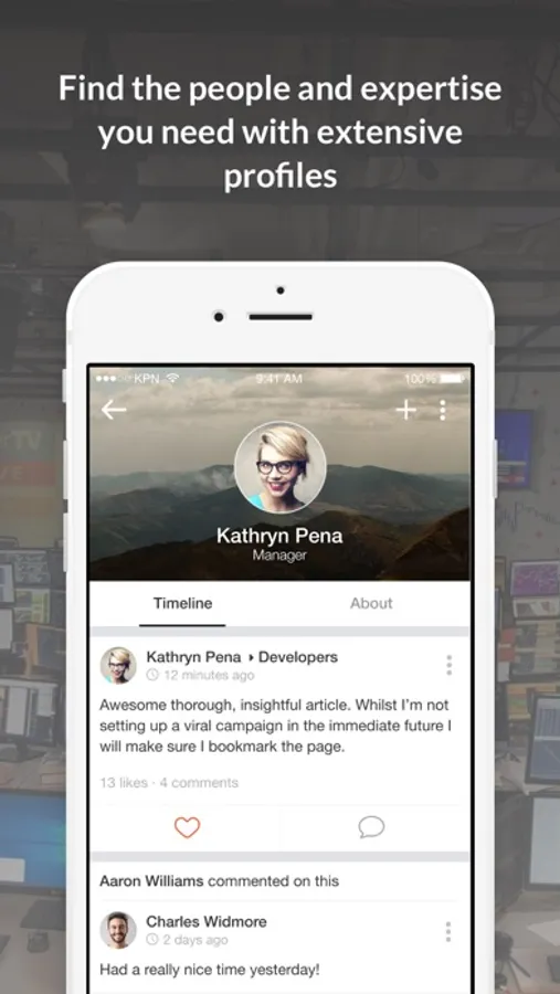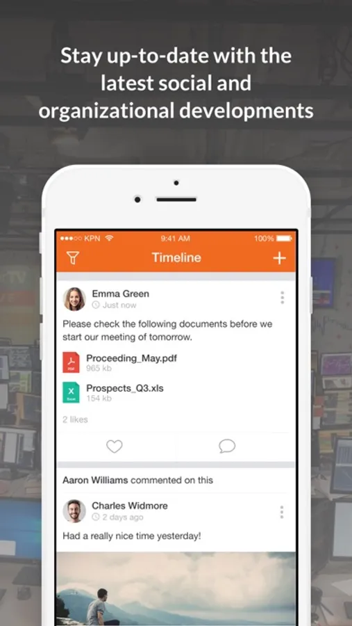 Share new knowledge, ideas and internal successes quickly and easily with the rest of your team, department or community. Enrich messages with pictures, videos and emoticons. Simply keep track of new posts from your colleagues, organization and partners.
