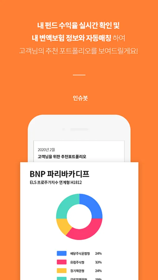 - 변액보험에 대한 펀드수익율 정보를 실시간으로 확인 가능하며, 내 변액보험 매칭으로 최적의 포트폴리오를 제공 받을 수 있습니다.
