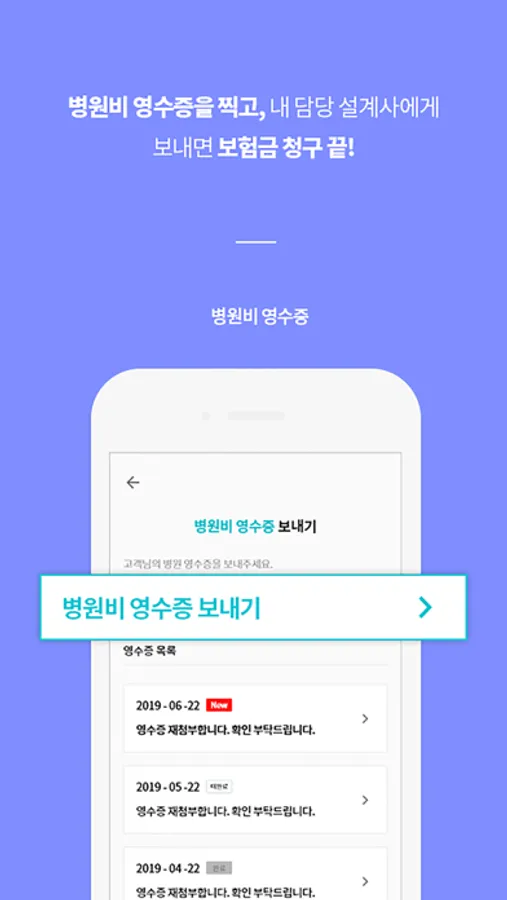 - 잊어버리기 쉬운 병원비 영수증, 라이프리에서 손쉽게 보관하고 담당설계사에게 공유하면, 보험금 신청을 도와드립니다.