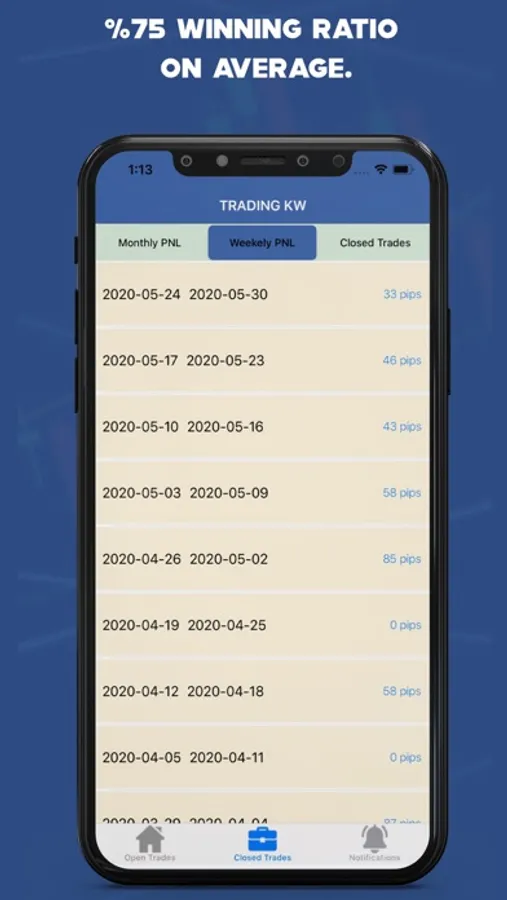 Whenever there is a good trading opportunity a trading alert will be sent to your mobile device as a notification.