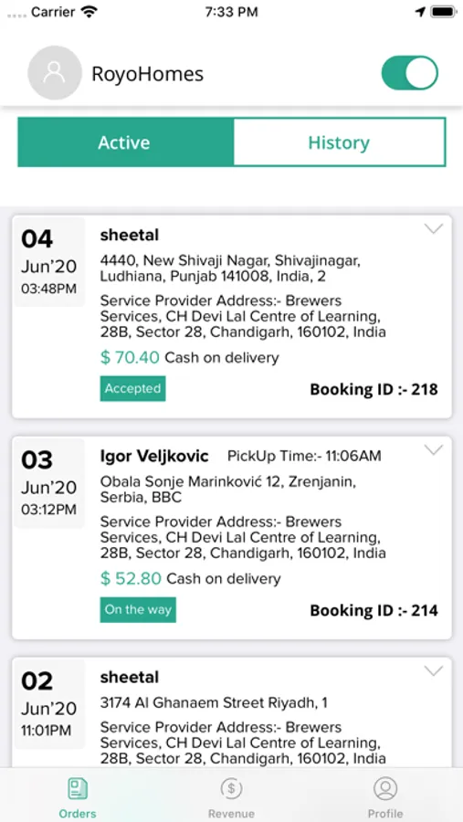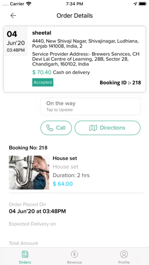 Agent app to get service orders and navigate to the user location to provide services requested through user app.