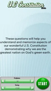 If you want an app that will help youth memorize and drill content of the United States Constitution then look no further. Solis U.S. Constitution Drills has over 60 questions to help youth comprehend our wonderful national document that is the reason why we are the greatest nation on God's green earth.
