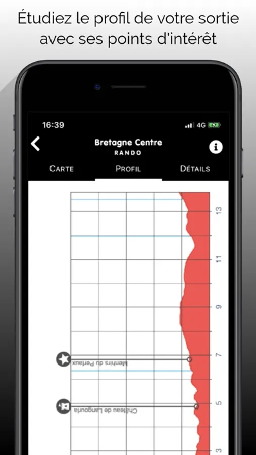 Avec l’application, que ce soit pendant la balade, en arrivant sur le site de pratique ou à domicile, l’utilisateur accède à toutes les informations des parcours ; notamment le suivi de l’itinéraire et du profil en direct grâce à la géolocalisation, le téléchargement des cartes des parcours, l’accès aux données GPX, … .
