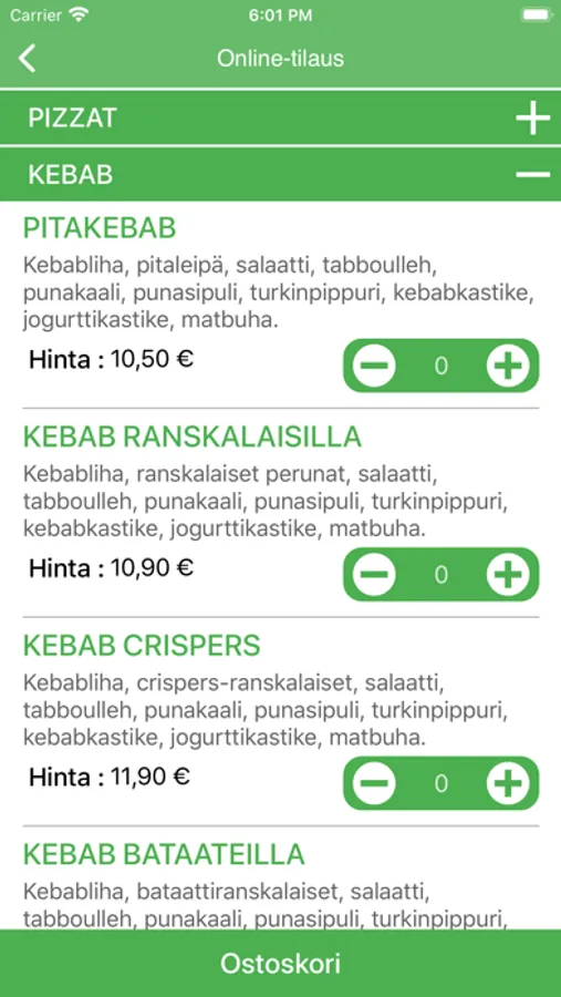 Tilaa pizzat ja kebabit noutona tai kotiinkuljetettuna. Tarjontaamme kuuluvat PIZZAT, KEBAB, PITAT, BRGR & STREET, WINGS ja JUOMAT.
