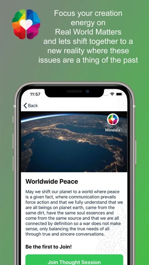 Mindala is a Circle of Minds allows us all, to suggest, create and manifest our purest and deepest passions for the universe into a reality, Together.