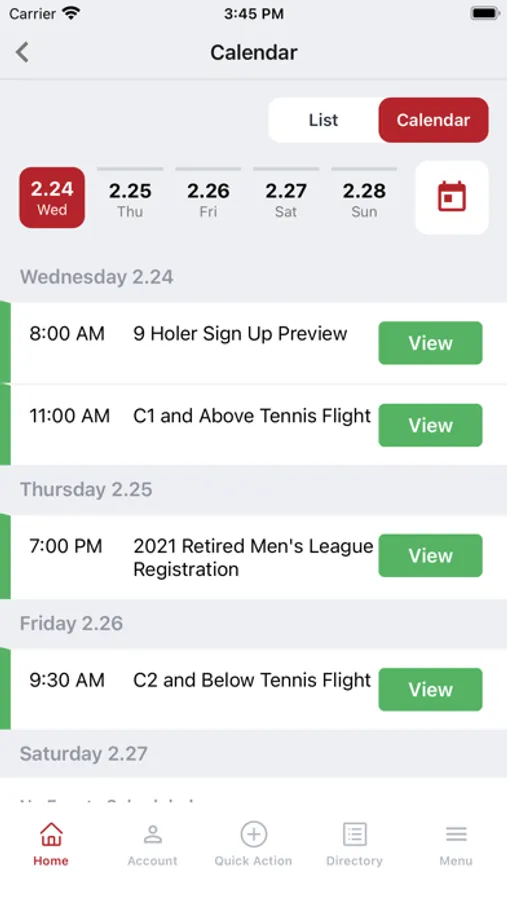 - View calendar of events and sign up