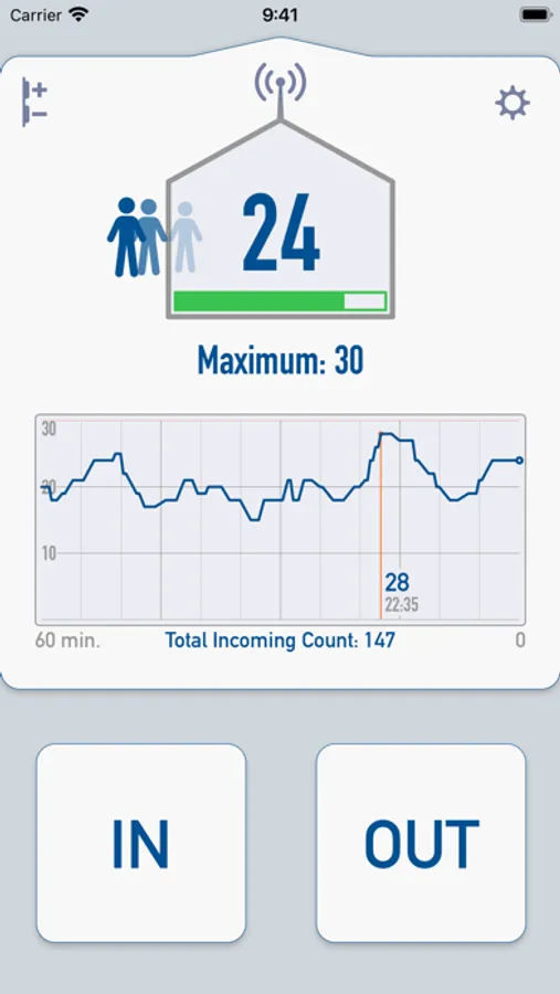 √ - Simply tap the "IN" or "OUT" button to add or remove visitors.