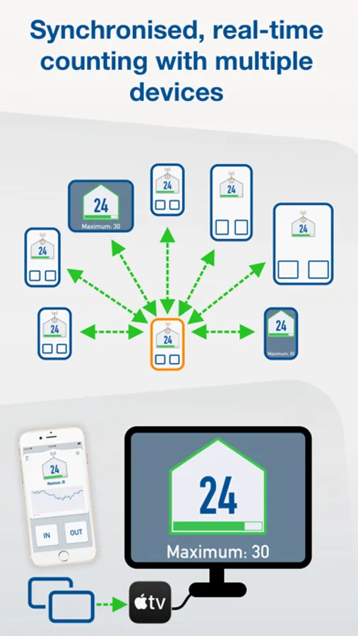 This way you and your colleagues can monitor multiple entrances and exits, and everyone knows exactly how many people are inside. A unique and indispensable app for retailers and managers of various public and event venues.