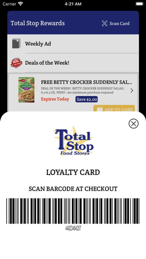 Claim as many coupons as you want with one simple scan! No more searching through mailers or printing out emails, Total Stop Food Store Rewards is bringing rewards right to your mobile device!