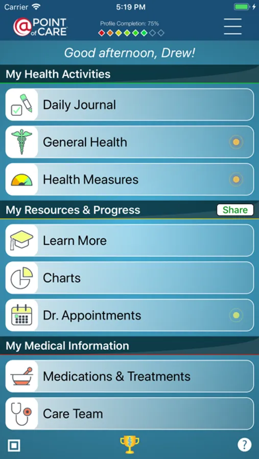 When you are living with GCA, the GCA Manager can help you manage the symptoms that affect you every day. Studies show that people with chronic diseases can positively affect their lives by using @Point of Care apps to track pain, medications, and more—giving a sense of control over their conditions.