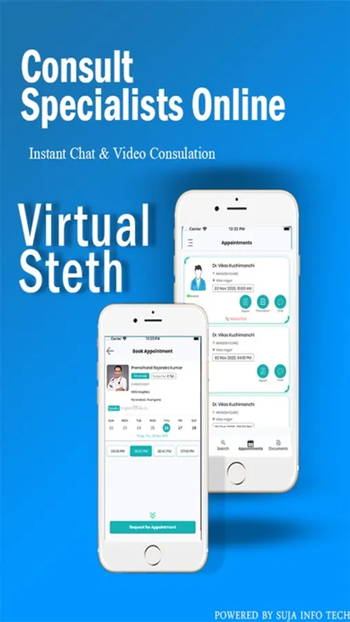VirtualSteth-Suja mobile app makes it easy for you to take care of your health - using Virtual Steth you can quickly find doctors around you, view doctors details and book instant appointments.