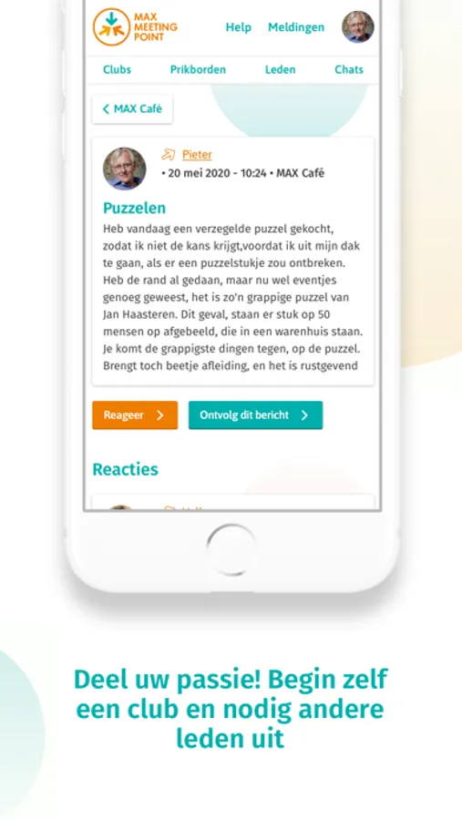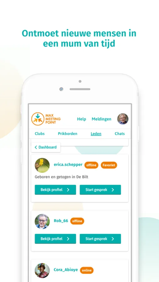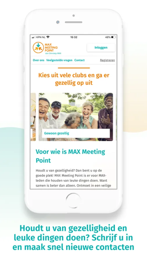 MAX Meeting Point van Omroep MAX is dé veilige app om online gemakkelijk mensen te ontmoeten. Omroep MAX laat 50-plussers zien zoals ze zijn: vaak zeer actieve mensen, betrokken bij hun omgeving en volop onderdeel van de moderne samenleving. Met MAX Meeting Point bieden we u een platform om in contact te komen met andere 50-plussers, om eventueel daarna samen of in clubverband af te spreken.