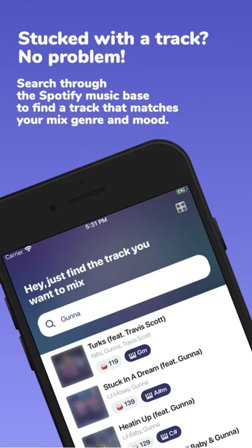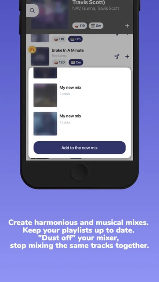 We use the huge Spotify* music base to find a track that matches your mix genre and mood. Our algorithms based on musical theory choose the most suitable next track for your Mix. We analyze track key, tempo, and generate the hottest matches. Moreover, you can sort all recommendations by track bpm and key.