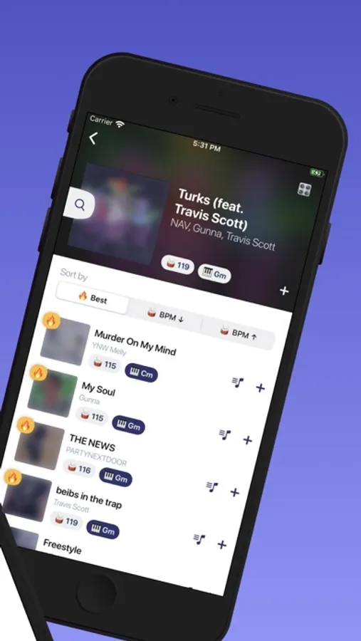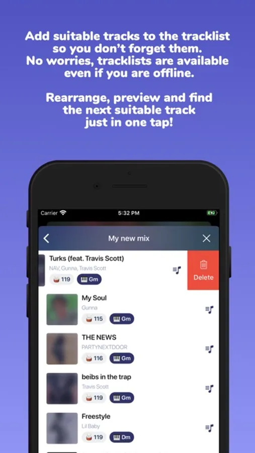 Preview the tracks and compare them right in the app! Add suitable tracks to the tracklist so you don’t forget them. No worries, tracklists are available even if you are offline.