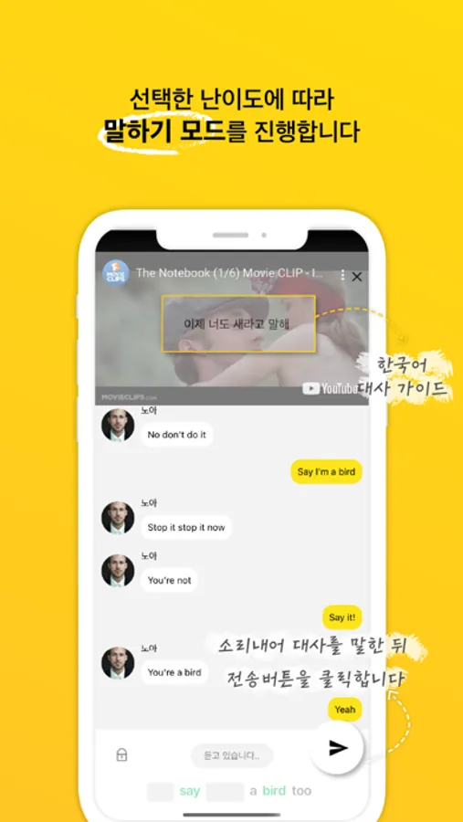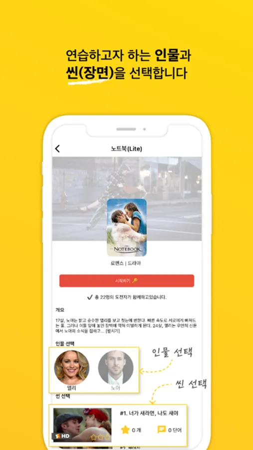 영화 속 등장 인물과 장면을 선택하여 대사를 연습해보세요