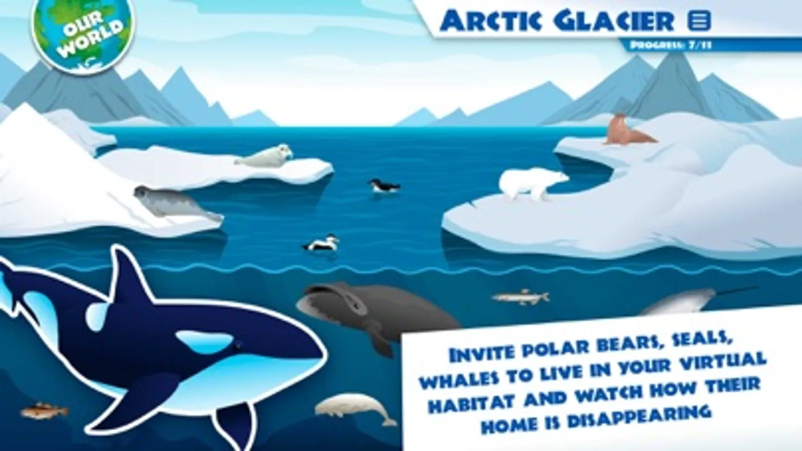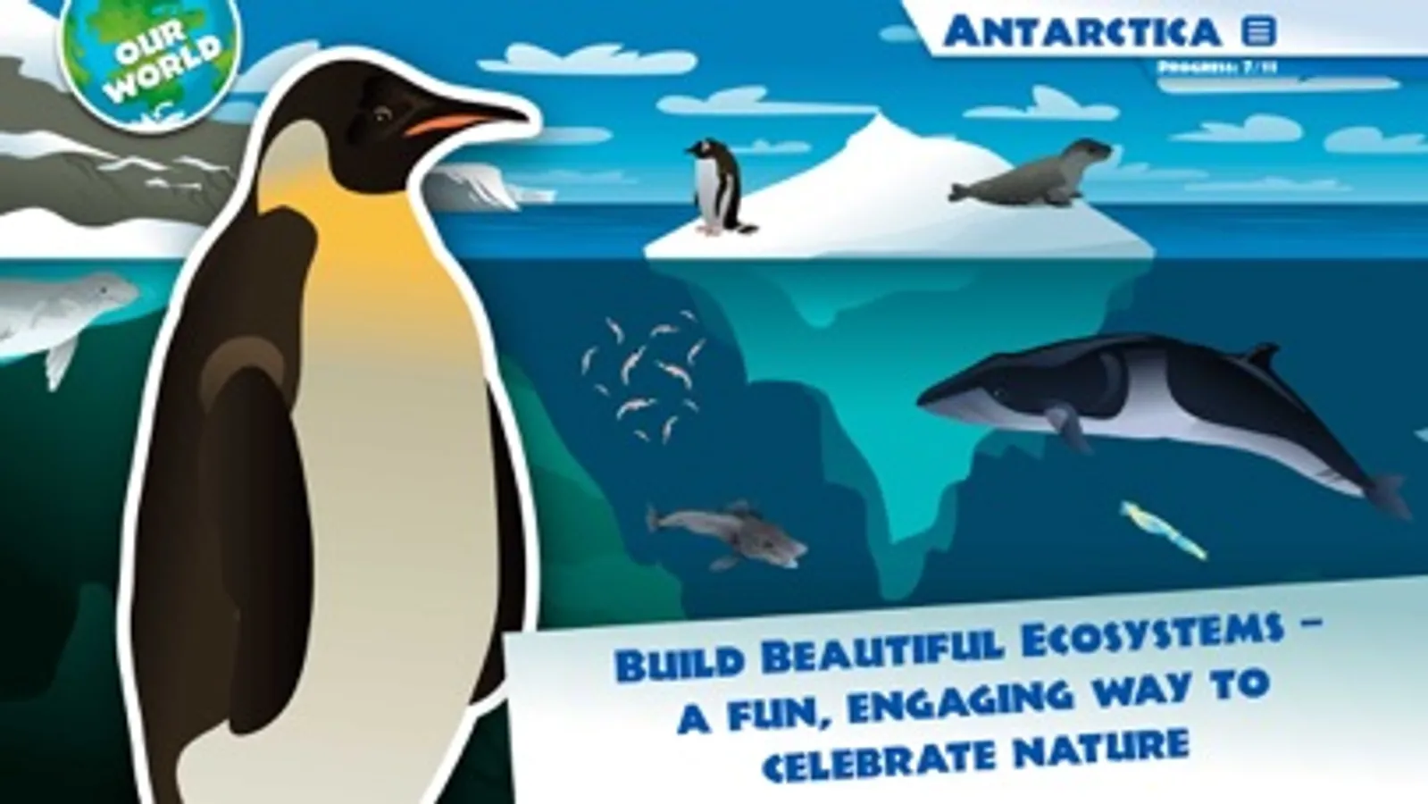 iBiome-Changing Ice is a beautifully-illustrated game that blends entertainment with environmental science, tapping into young players critical thinking skills and extraordinary passion for all living things. Players discover the wonder and fragility of the polar regions and experience the impact climate change is having on its inhabitants.
