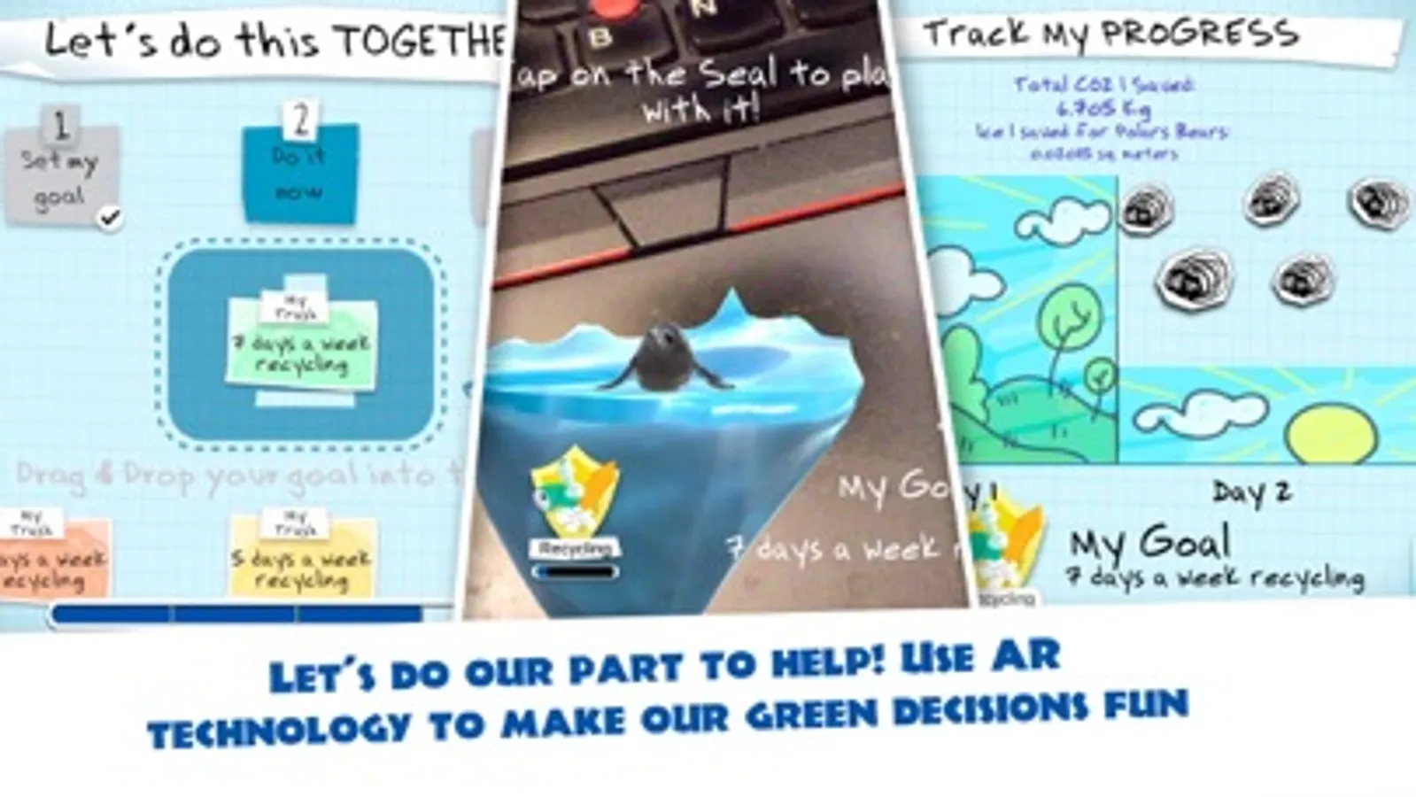 • Play with our daily choices in recycling, transportation and food choices, and see (literately) why together we make a big difference.