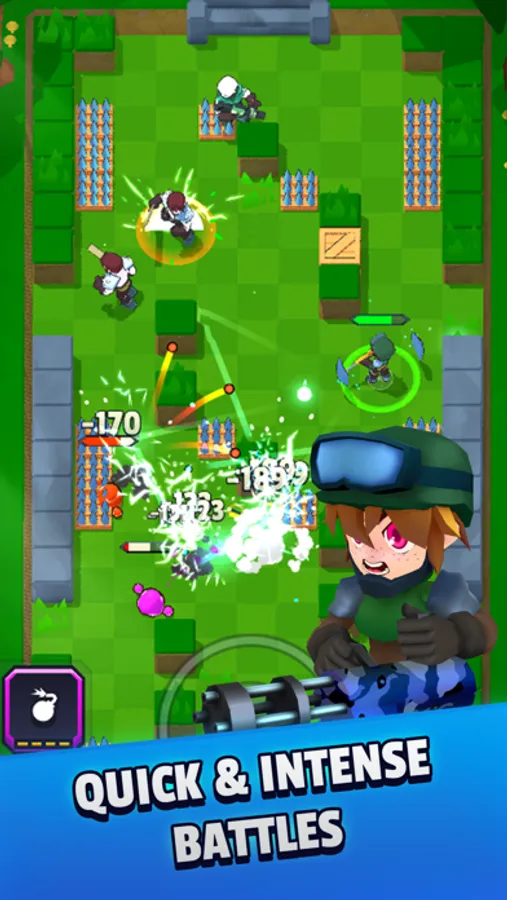 Reach the top of every Tower by shooting every Enemy that stands in your way. Each Tower has unique environments and enemies which will take you from fantasy grasslands, to arctic research stations, to sandy military deserts, and beyond. Complete your quest of defeating every Boss to prove your worth in this world of Adventure and become the Blaster Hero!