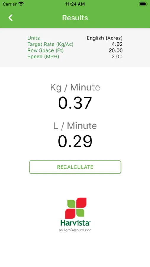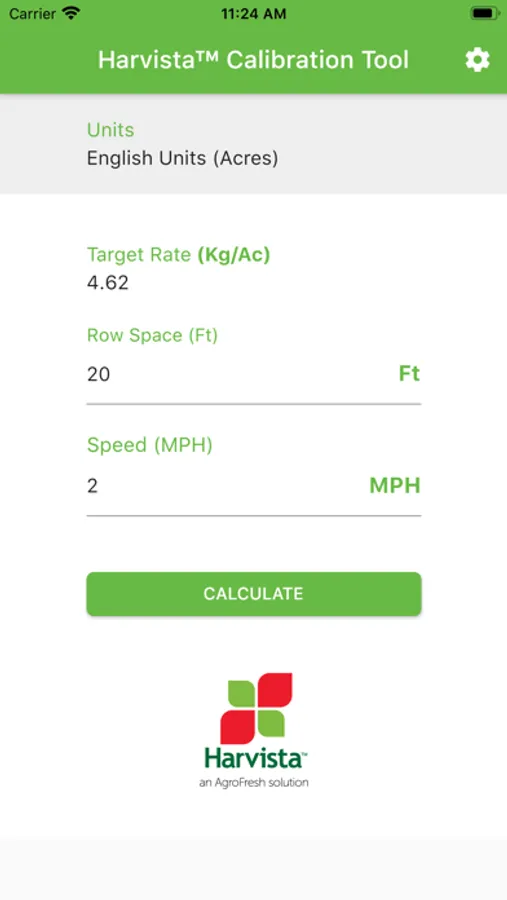 Harvista Calibration Tool app allows you to perform a simple calculation to provide optimum calibration accuracy.