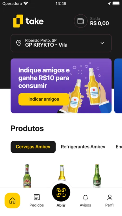 Baixe o APP, cadastre um cartão de crédito físico válido e vá até o cooler Take mais próximo de você. Através do aplicativo, faça a leitura do QR code localizado na porta do cooler para liberar a abertura do mesmo, retire os produtos desejados e pronto! A cobrança será feita automaticamente no cartão cadastrado, ou pelos créditos que você pode inserir via PIX em sua conta no aplicativo.
