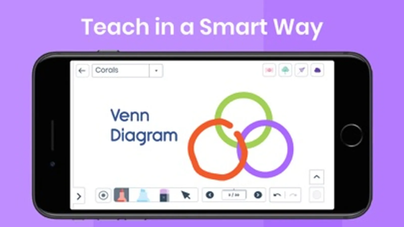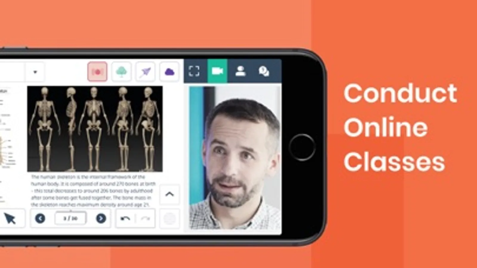 Teachers can conduct live class or virtual (audio and video enabled) class from anywhere, by sharing their interactive teaching canvas to the students.