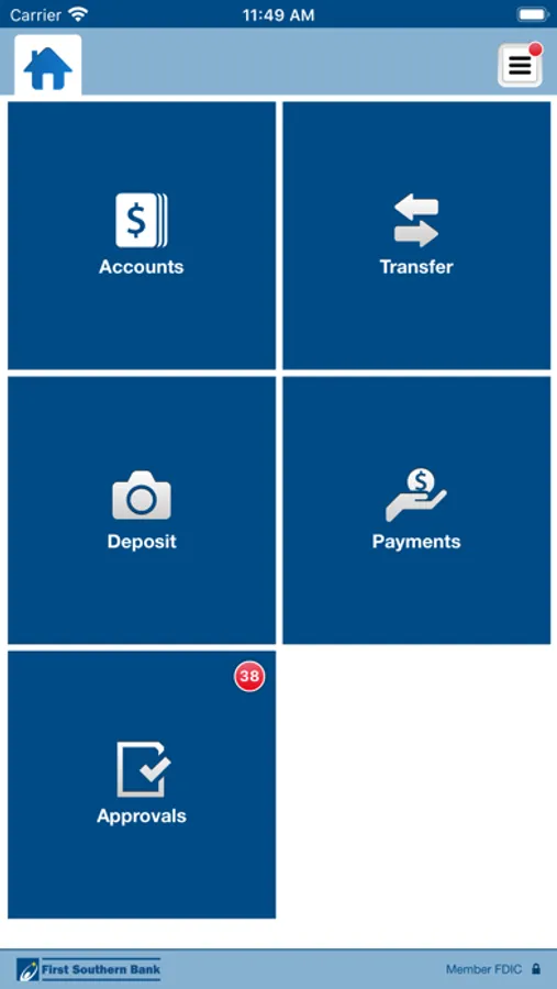Getting started is easy. Simply download the app and sign on with your Business Online user credentials. [No additional fees apply.*]. For more information about First Southern Bank IL mobile services, please visit www.firstsouthernbank.net or call us at 618-997-4341. *Carrier’s data rates may apply.
