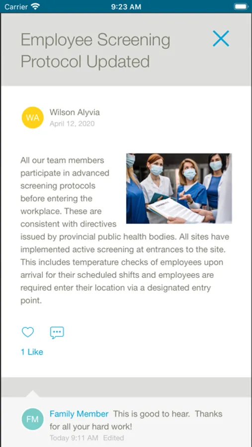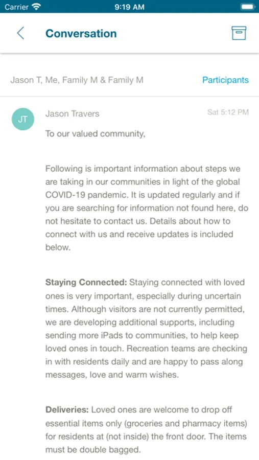 Use the iTacit Family app to receive communications from a long term care facility or assisted living facility where your family member resides.