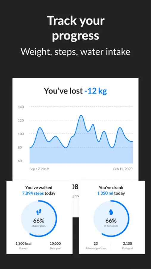 Fitter offers personalized at home workout programs for various goals – weight loss, muscle gain, getting fit, and more. Choose the perfect plan for you and join Fitter challenges to compete with other users!
