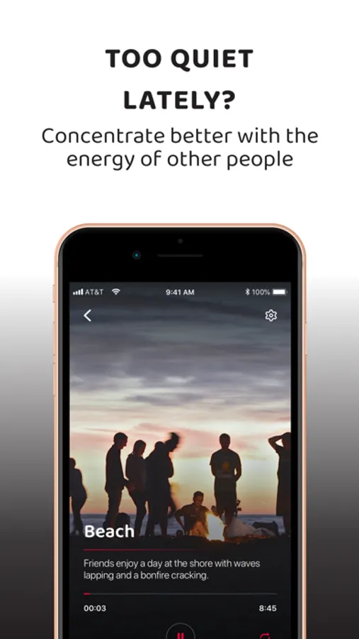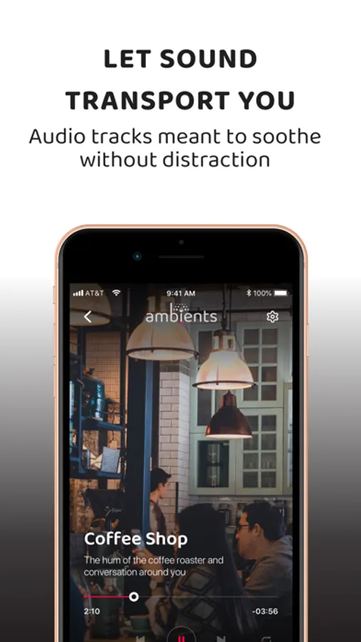Whether we're working in a coffeeshop amidst strangers, or walking down a crowded street, people make up the ambient soundtrack of our lives. Concentration is tough with an absence of sound. Ambients reintroduces the quiet, persistent background noise of the world with audio tracks meant to soothe without distraction.