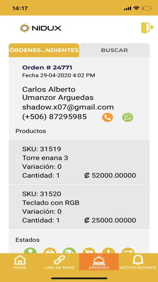 Con el App de NIDUX te facilitamos el monitoreo de tu eCommerce. Podrás procesar y ver detalles de las órdenes, crear enlaces de pago y recibir notificaciones.