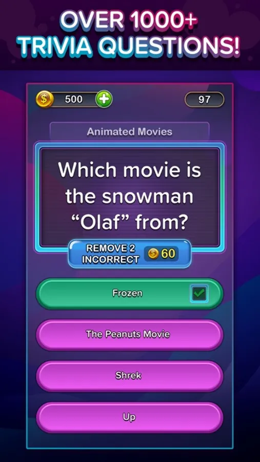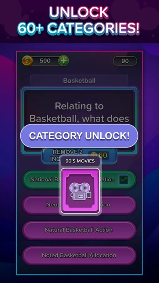 - Chose from over 60+ categories including: general knowledge, food, celebrities, animals, sports, music, movies, TV shows, brands, science, and more!