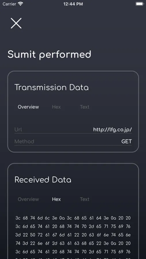 - Received data in binary format