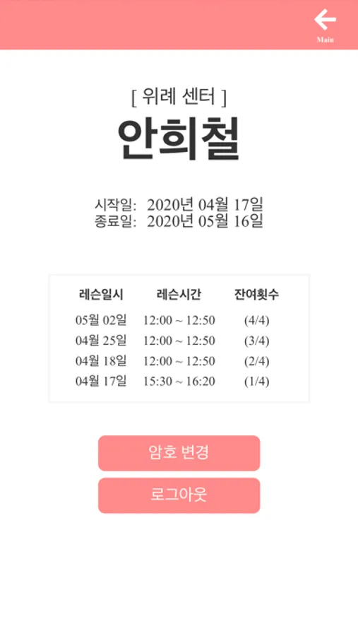1. 로그인 후 루미앱 메인 페이지에서 현재 나의 수강 현황 확인 가능.